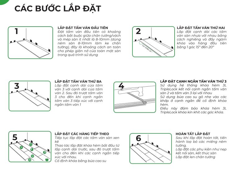 - Kiểm tra lại toàn bộ sàn: Đảm bảo các tấm sàn được lắp đặt chắc chắn, không có khe hở.