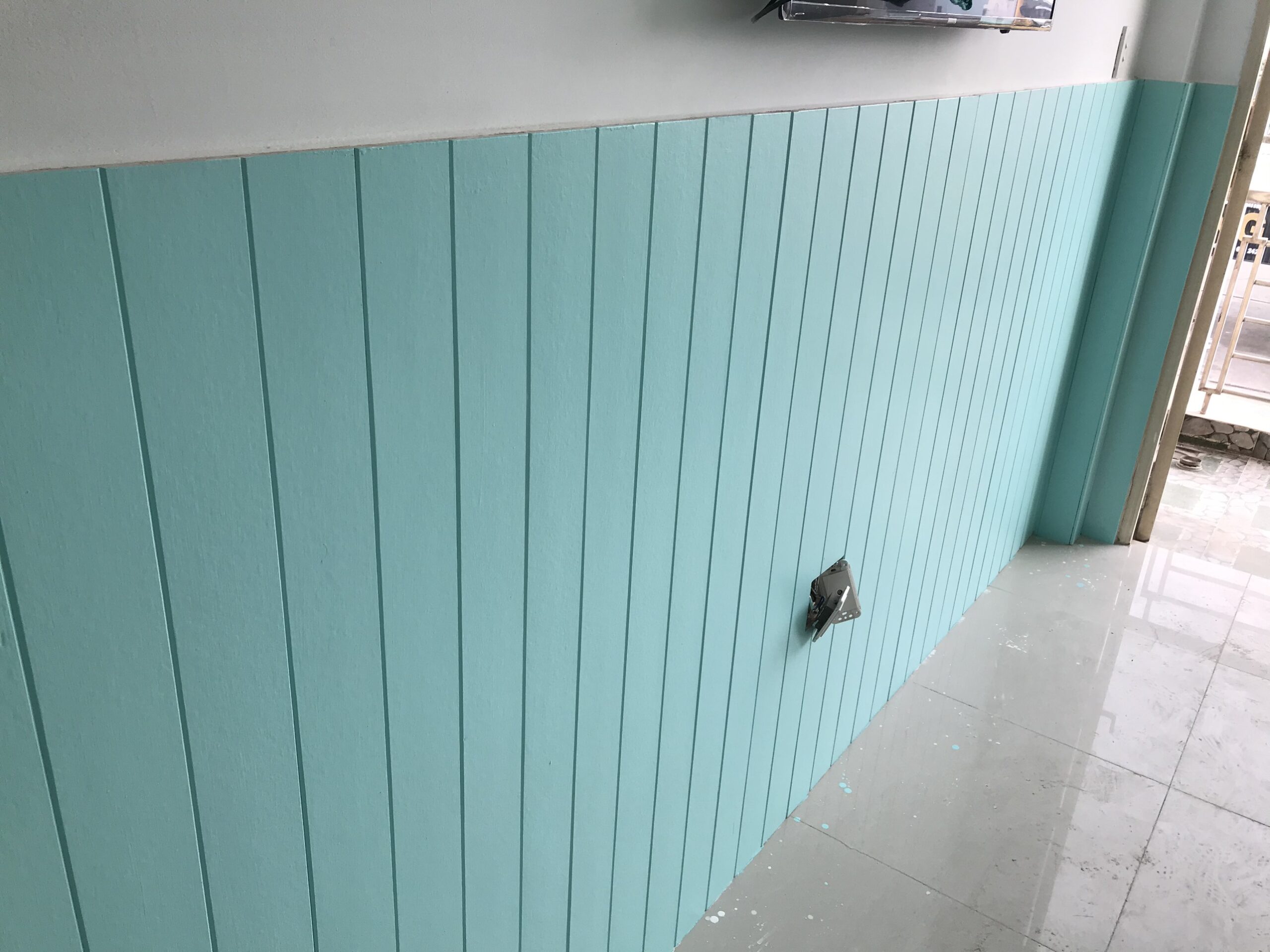 350-450k/m2 : Sử dụng tấm xi măng giả gỗ Smartwood mã 10x400x1,2 vân gỗ 3d thẳng nổi, kết hợp sơn nước Jotun